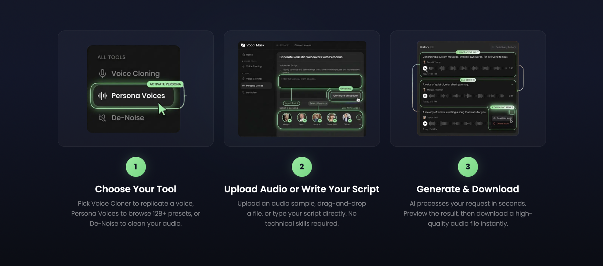 Generated audio can be previewed or downloaded for use in videos, apps, or content.